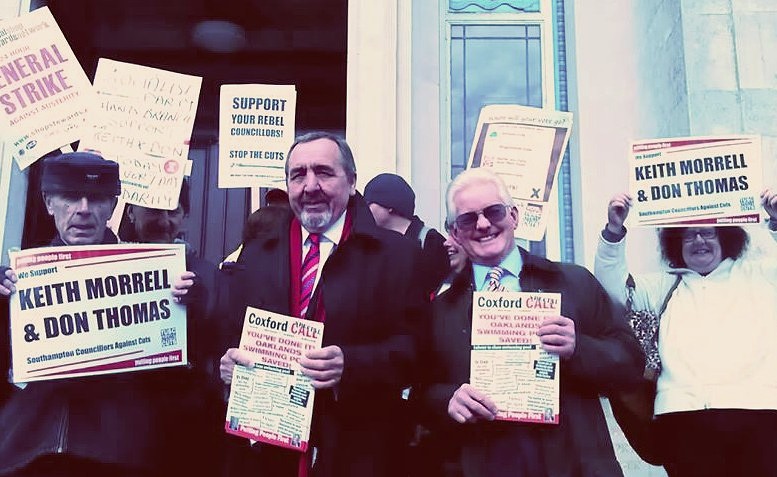 Don (in 2007) and Keith (in 2010) were originally elected as Labour councillors, in a period when Southampton council had a Tory administration, and were part of the Labour Group that took majority control of Southampton council at the May 2012 local elections held under the then Conservative-Liberal Democrat coalition government. But very soon they came up against the new Labour council leadership who were not prepared to lead a struggle against the Con-Dems’ austerity agenda. The Labour council’s own local austerity measures included a proposal to close the Oaklands swimming pool in Keith and Don’s Coxford ward.